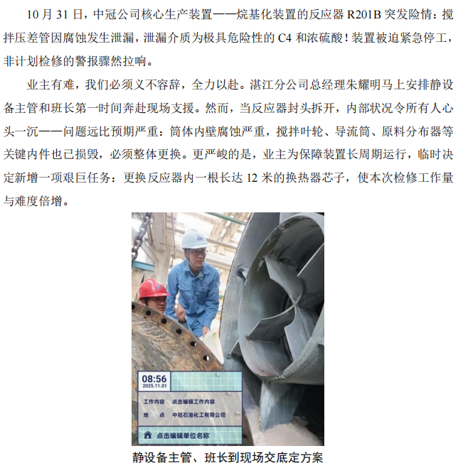 湛江分公司中冠项目部抢修烷基化反应器纪实