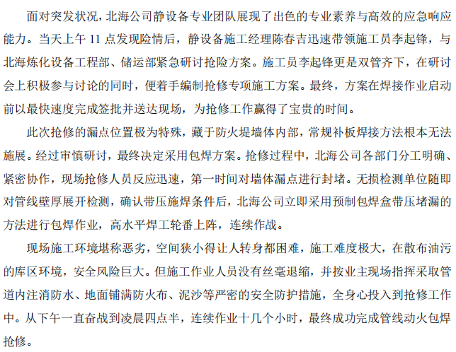 北海公司紧急抢修:高效攻坚,力保安全防线