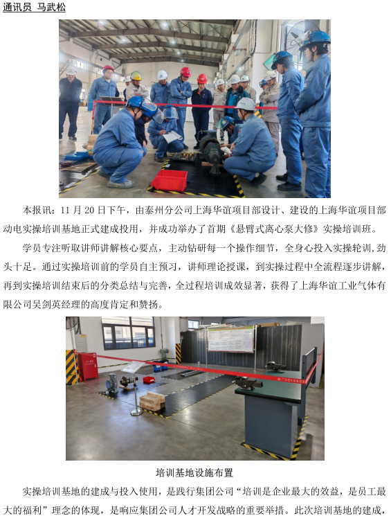 泰州分公司上海华谊项目部实操培训基地建成开班