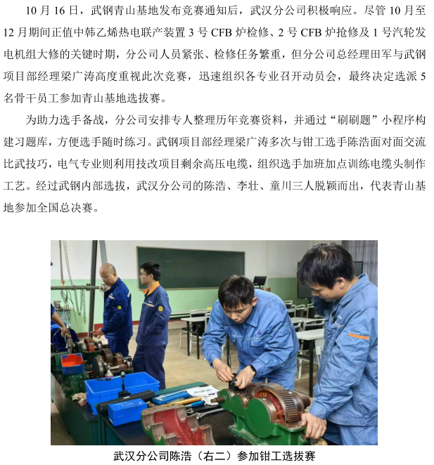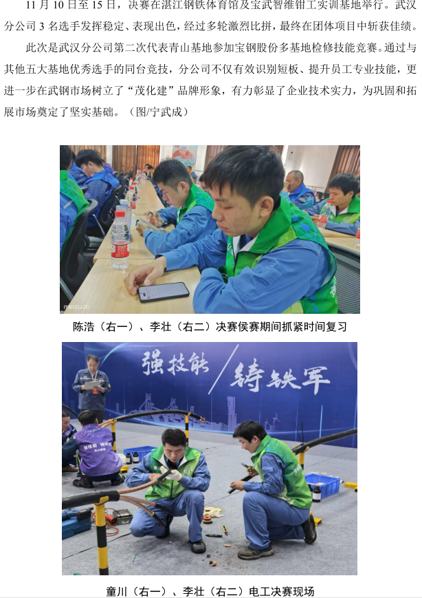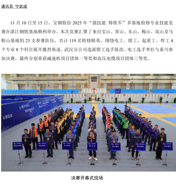 武汉分公司在宝钢股份2025 年多基地检修技能 竞赛中荣获佳绩