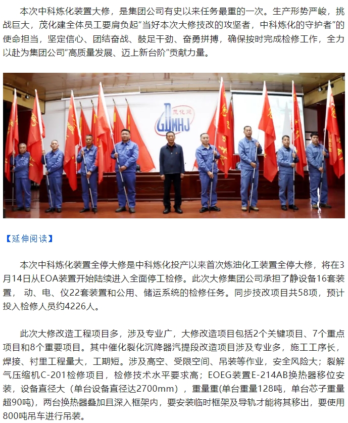 勠力同心擂响战鼓 千军万马出征大修——集团公司2024年中科炼化装置大修动