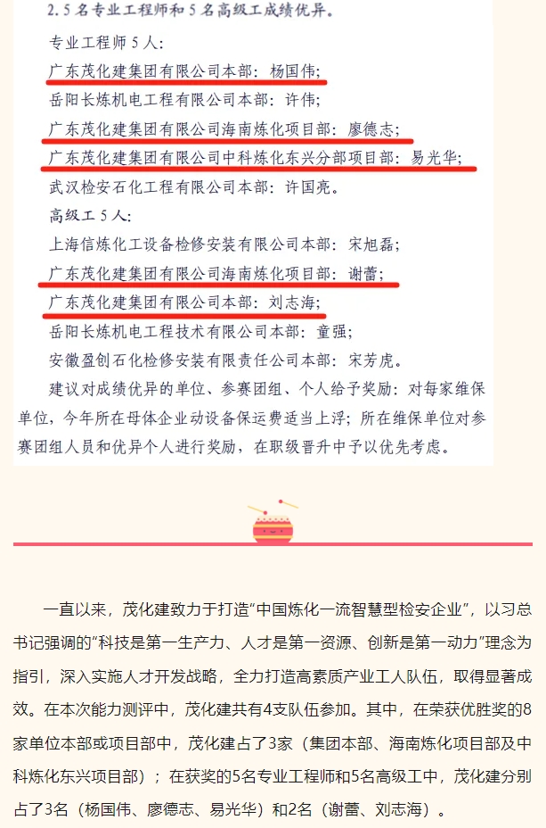 祝贺!茂化建在中石化炼化企业维保队伍动设备实操能力测评中成绩优异,名列前茅